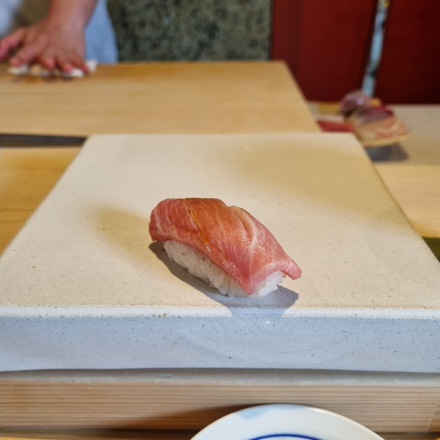 조금 놀랐던 순서! 대뱃살이 두번째에 나온다고? 라고 생각했는데 조금 줄인 간장과 밥과 참치의 기름에 적응 할 수 있던 아주 좋은 니기리였다.