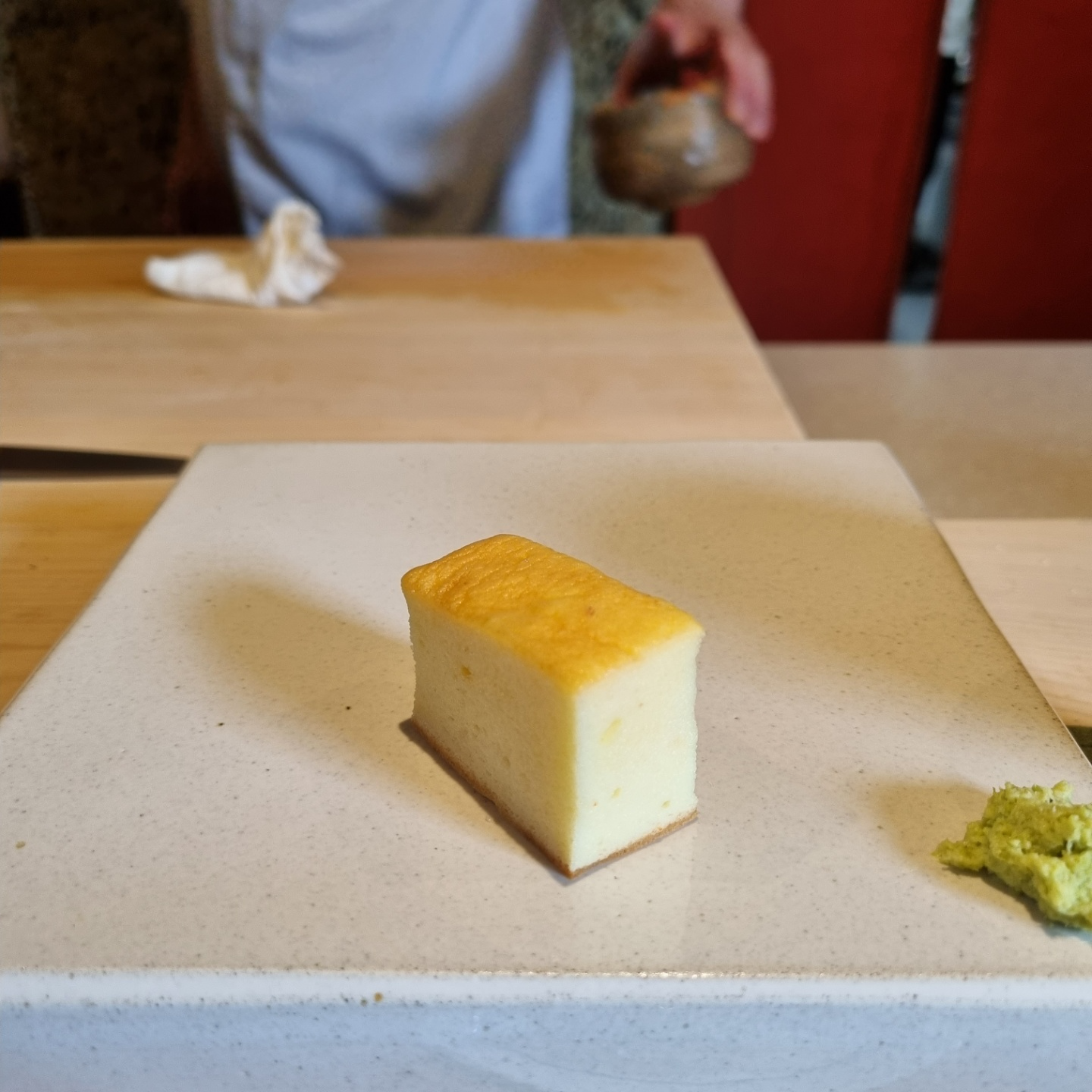 식사의 마무리를 알리는 교꾸가 나왔다. 카스테라 같은 식감을 목표로 하고 만든 교꾸인 것 같았다. 엄청 달지는 않았지만 폭신폭신해서 맛있게 먹었다.