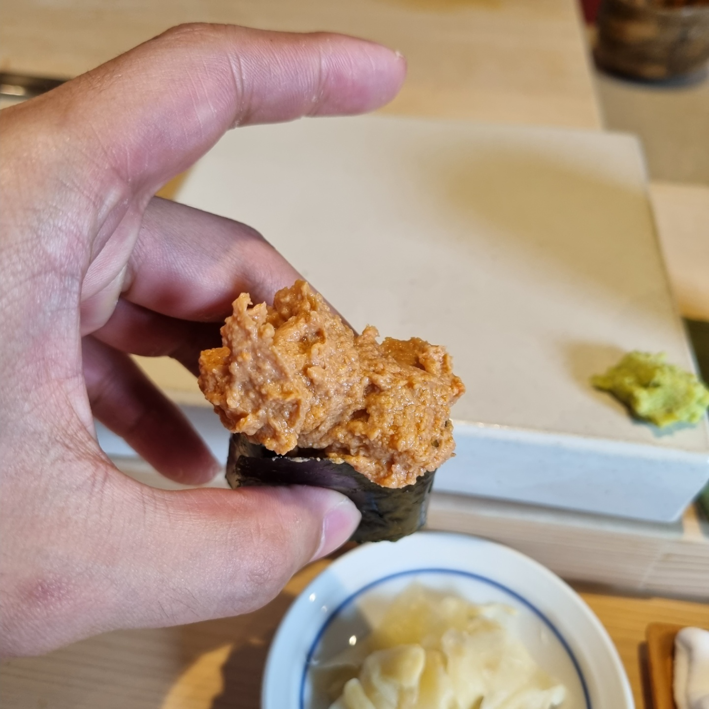 아까 츠마미에서 먹고 속으로 외친 내 마음이 들렸던건지... 안키모 군함말이가 나왔다. 역시 안키모 너무 맛있다. 진짜 엄청 꽝이 걸리지 않는 이상 안키모는 어딜가나 평타는 하는 것 같다. 게다가 달고 향도 정말 풍부하기 때문에 맛없기 쉽지 않다.