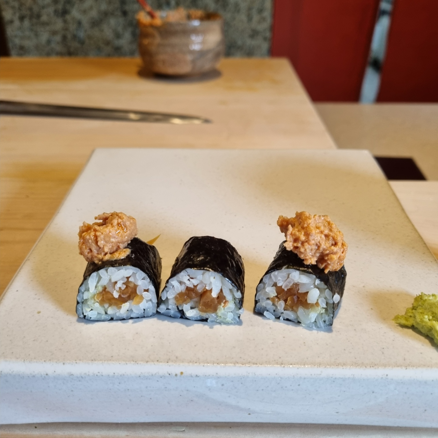 튀는 샤리랑 어울리는게 흰살 생선이라고 해서 기대했는데! 갑자기 샤리 엄청 드라이하기! 근데 오히려 드라이한 샤리랑 잘어울렸다. 왜 그런지는 모르겠지만? 샤리가 엄청 와리가리 했다. 드라이 했다가? 갑자기 엄청 뜨거웠다가. 짰다가 안짰다가. 뭔가... 내가 잘못먹었나?! 싶었다.