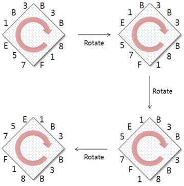 이 경우에 생성 가능한 수는 각 회전 별로 다음과 같다.