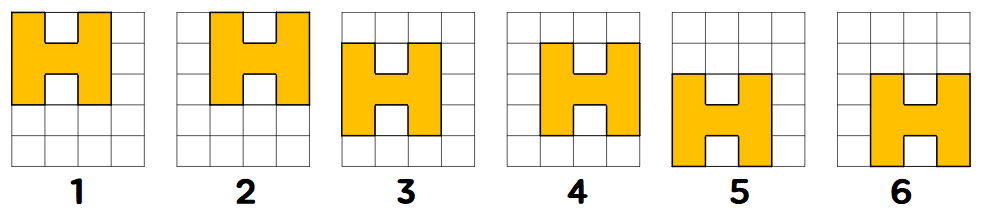 아래는 올바른 모눈종이의 예시이다. 주황색 칸은 스티커가 붙은 칸을, 하얀색 칸은 스티커가 붙지 않은 칸을 나타낸다.