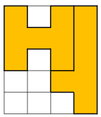 네 번째 스티커는 스티커를 시계방향으로 0, 90, 180도 회전 시킨 모양에 대해 온전히 붙일 수 있는 공간이 없다. 그러나 시계 방향으로 270도 회전한 후에는 공간이 1개 생긴다. 스티커를 붙인 후 노트북의 모양은 아래와 같다. 최종적으로 노트북의 18칸이 스티커로 채워졌다.