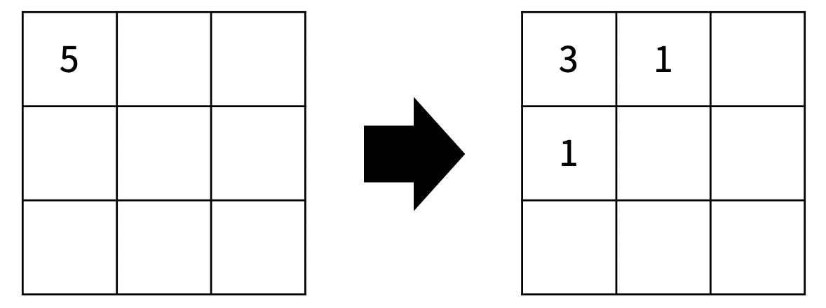 3 - 1 확산 양이 현재크기/5 이므로 4보다 작은것들은 안봐도 무방함.