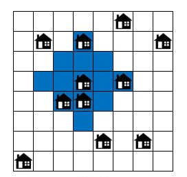 [Fig. 5]와 같이 서비스 영역 K = 2로 하여 홈방범 서비스를 제공할 때는 최대 3개의 집까지 서비스 제공이 가능하다.